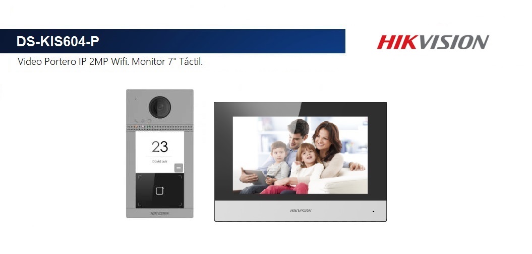 • DS-KIS603-P: Kit de videoportero IP Wifi con camara de 2MP con detector de movimiento, ideal para intemperie IP65. Monitor LCD Táctil a color 7".