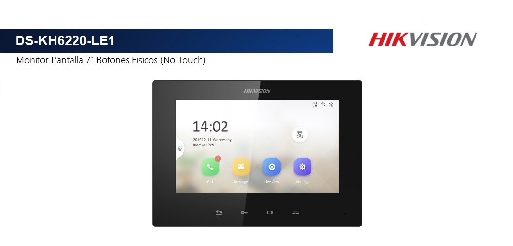 • DS-KH6220-LE1: Pantalla NO TOUCH de 7" cuenta con 4 botones físicos), Apertura remota y visualización en vivo. Ethernet TCP/IP