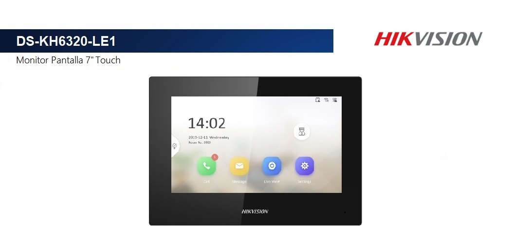 • DS-KH6320-LE1: Pantalla Táctil de 7" Ethernet TCP/IP, Wi-Fi.